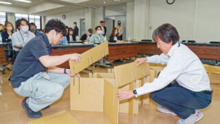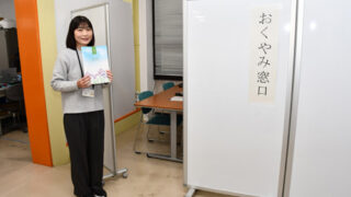 「おくやみ窓口」22日から運用市が本庁舎1階の市民・国保課内で手続き1カ所で遺族の負担軽減新たに「ハンドブック」配布1日に2枠を受け付けハンドブックを手に「おくやみ窓口」のそばに立つ担当職員(市役所で)※詳細は紙面で。