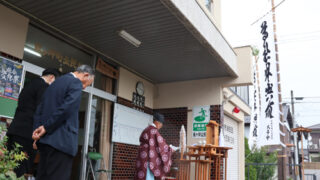 記事 2025.10.08pickup02 「尊社出輿所」ののぼり旗鳥ケ坪町自治会が35年ぶり新調木祖殿神社の秋季大祭向け全国でもまれ?小雨が降る中、清めはらい式は新調されたのぼり旗の方を向いて鳥ケ坪町公民館の玄関前の軒下で行われた(上延町で)※詳細は紙面で。 2025.10.08 記事