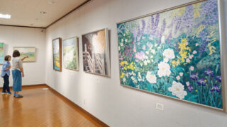 記事 2025.10.10pickup02 本社後援日本画「遊の会」3教室20人の35点展示集蔵で13日まで庭に咲く四季の花のイメージが迫ってくる大判の作品など、それぞれの絵の世界に入り込むことができる(青野町で)※詳細は紙面で。 2025.10.10 記事