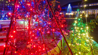 「シンボルツリー」も登場23日から綾部夢ライトグンゼスクエアで12月25日まで20日夕方に行われた試験点灯(青野町で)※詳細は紙面で。