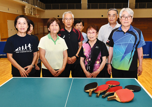 2025.09.22pickup01 記事 X Facebook LINE コピー 2025.09.222025.09.23 スマッシュ決まれば 気分スカッと90歳の佐々木歳子さん=東山町卓球が元気の源週2日「上杉クラブ」で楽しむ仲間から目標とされる存在 「上杉クラブ」の仲間に囲まれる佐々木さん(前列右から2人目)=西町3丁目で ※詳細は紙面で。
