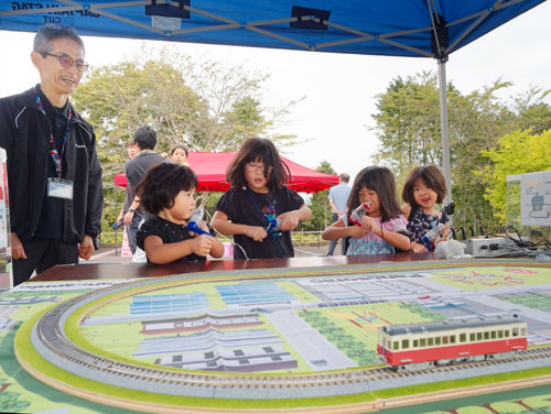 2025.09.24pickup02 記事 X Facebook LINE コピー 2025.09.24 子ら楽しく環境学ぶ開館30周年の市天文館で「エコフェスタ」25周年の市環境市民会議と市教委主催グリーンカーテン写真の表彰も 子どもたちが手回し発電機を回すと模型のレールに電流が流れ「電車」が走った(里町で) ※詳細は紙面で。
