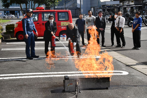 2025.10.31pickup02 記事 X Facebook LINE コピー 2025.10.31 火災に備え従業員が訓練ステーションホテル綾部通報や避難の手順確認 消火器を使った初期消火訓練もあった(井倉新町で) ※詳細は紙面で。