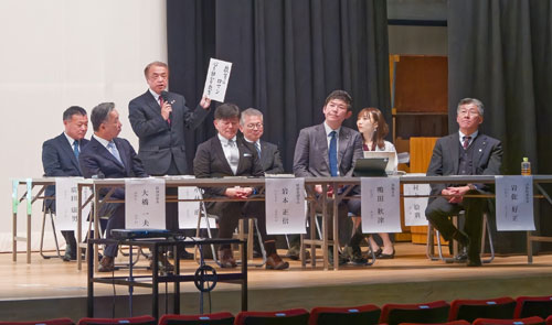 2025.11.14pickup01 記事 X Facebook LINE コピー 2025.11.14 市教育委員会「自治体教創コンソーシアム」に参画小規模特認校制度など共同研究 府北部の首長、教育長らと共に登壇し「心を動かす教育」を語る小林教育長=福知山市で ※詳細は紙面で。