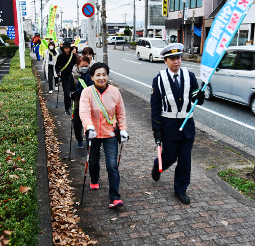 2025.12.03pickup02 記事 X Facebook LINE コピー 2025.12.03 10日まで各地で啓発活動年末の交通事故防止運動で年の瀬を 無事故で走ろう 京の道 パトロール活動のために綾部署を出発した「綾部ヘルシーウオーククラブ」のメンバーら(宮代町で) ※詳細は紙面で。