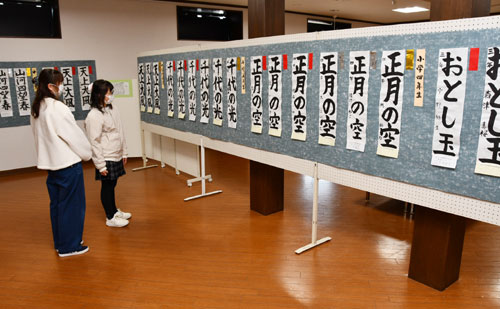 2026.01.21pickup02 記事 X Facebook LINE コピー 2026.01.21 綾部書道会初の「新春書き初め展」小中学生の力作80点展示 市内の書道教室で学ぶ小中学生の作品が並んだ(青野町で) ※詳細は紙面で。
