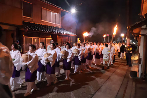 2026.02.04pickup01 記事 X Facebook LINE コピー 2026.02.04 夜を徹し大本節分大祭綾機神社、来月末には地鎮祭出口教主があいさつで報告 人型を納めた壺を手に由良川へと歩く瀬織津姫の行列(本町2丁目で) ※詳細は紙面で。