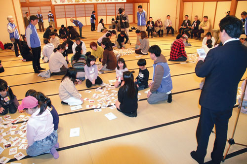 2026.02.25pickup01 記事 X Facebook LINE コピー 2026.02.25 公募の45句を初披露市民憲章かるた大会&文化体験会「於見の大太鼓」演奏も 大人と子どもそれぞれのグループに分かれ、かるた取りを競い合った(上野町で) ※詳細は紙面で。