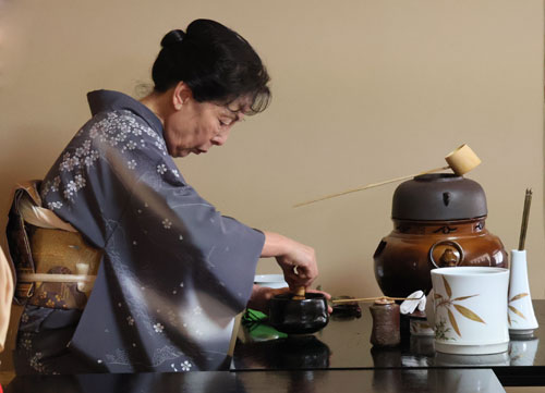 2026.03.18pickup01 記事 X Facebook LINE コピー 2026.03.18 150人招き自祝茶会裏千家・名誉師範の今枝宗昭さん茶歴75年と米寿迎え 静寂に包まれた濃茶席で心のこもったお点前が披露された=神宮寺町で ※詳細は紙面で。