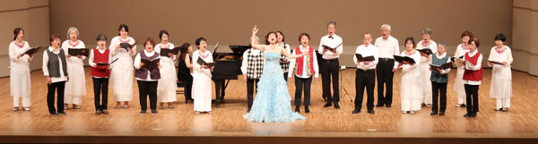 2026.04.01pickup02 記事 X Facebook LINE コピー 2026.04.01 山口光代さんが初リサイタル恩師と仲間に感謝の歌声本社後援66歳の記念に開催準備期間はわずか3カ月平和への思い届けたい 合唱団の仲間とともに、手話を交えて「リメンバー」を歌い上げる山口さん(中央)=里町で ※詳細は紙面で。